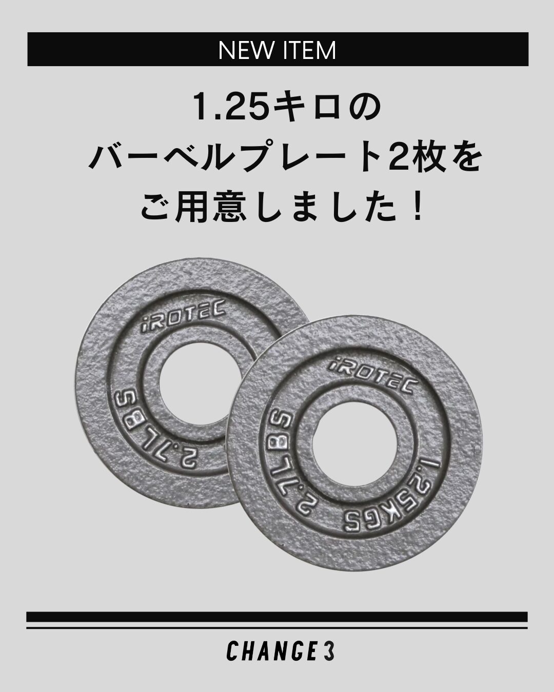 これまで当ジムではバーベルプレートの最小単位が2.5キロからのご用意となっておりましたが