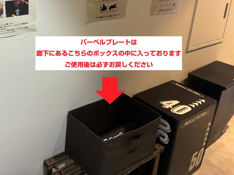 ※使い終わったら必ずもとの場所(ジム内廊下のボックス)にお戻しください。